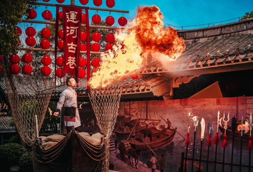 京杭大运河畔,枣庄市台儿庄古城的夜色是从一盏盏红灯笼次第亮起开始的。青石板路上游人如织,桨声灯影里的古运河波光粼粼,一段悠扬的萨克斯旋律顺着风飘过来,裹着古城特有的烟火气,钻进每个游客的耳朵里。