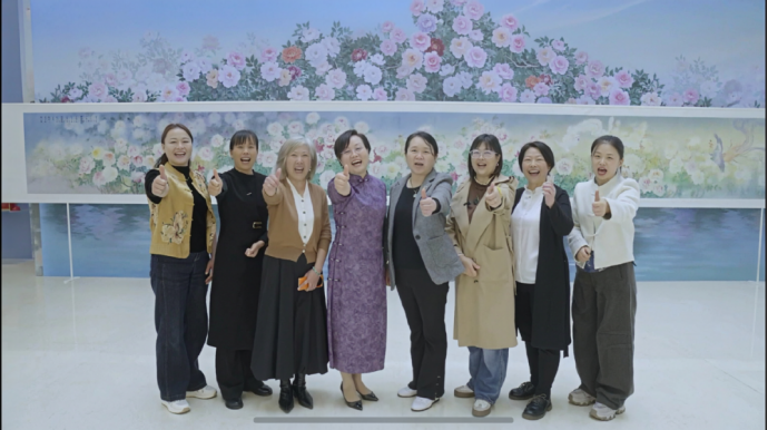 时间回溯到去年10月,《凤穿牡丹》在全球妇女峰会配套活动“数智赋能妇女和女童成果展”现场亮相。画作前,几位气质沉静的中国女性笑容温婉,与画中的华彩交相辉映——她们正是这幅画的主创:李巧玲、张雪云、常秀娟、洪晓雁、田琳琳、裴薇薇、张玉梅、胡咏梅。
