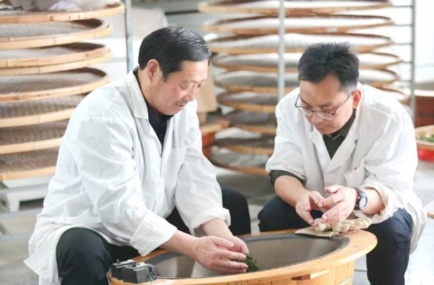 这份担忧背后,是杨现明四十多年的坚守与付出。1983年起他就担任村茶叶技术员,2012年至2021年间,他累计培训茶农、技术人员1200余人次,培养了80名高级炒茶工和30名技能技师。他参与编写了《日照绿茶团体标准》等行业规范,还带动周边1800余户茶农增收。