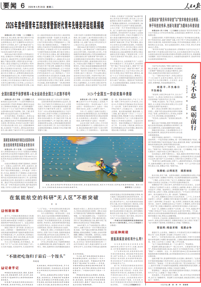 夜色渐深,工作室里依然灯火通明。墙上的专利证书和荣誉奖章,在灯光下静静排列。管益辉又坐回电脑前,拿起笔在图纸上标注起下一处修改。《人民日报》(2026年4月28日 6版)