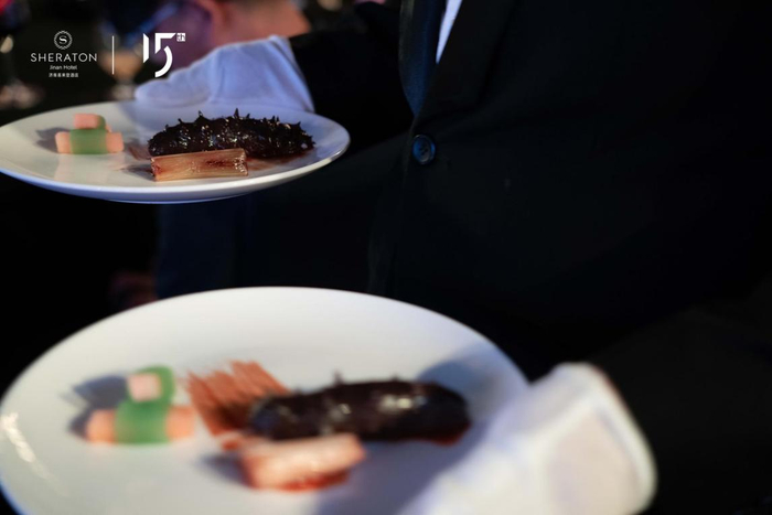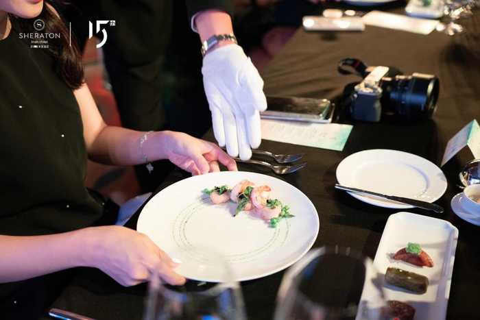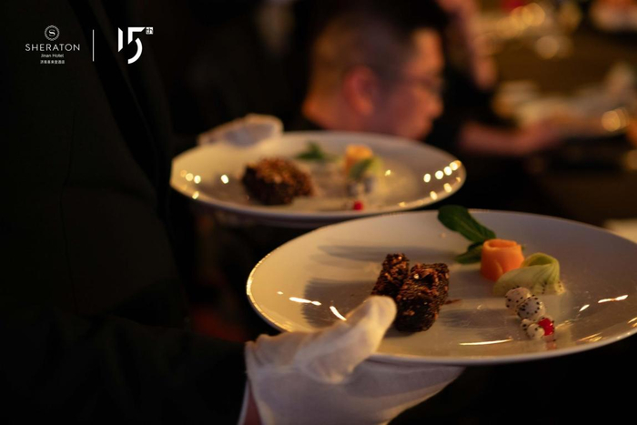 随后,晚宴在一场精彩绝伦的开场表演中拉开序幕,酒店以喜来登品牌的发展史为主线,呈现了一道道美食盛宴。每一道菜品皆象征着喜来登发展历程中的每一个重大里程碑。酒店师傅们携团队制作的每一道佳肴,融合了传统与现代的元素。美酒美食,一席匠心演绎的味蕾盛筵,受到了客户的一致赞誉。