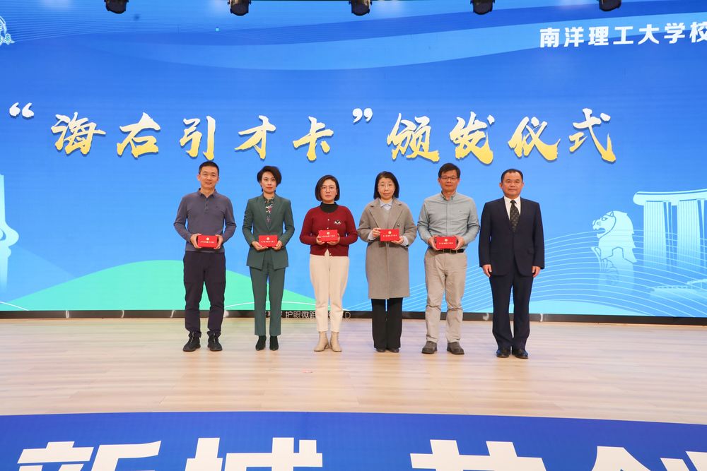 活动现场,起步区管委会党群工作部部长姜凌飞对起步区进行了全面推介,展示了起步区在政策、产业、人才等方面的优势。新加坡南洋理工大学校友代表张凯在发言中表达了校友们对参与起步区建设的浓厚兴趣和坚定决心。吴涛同志为校友代表颁发“海右引才卡”,济南市贸促会党组成员高小扬、起步区管委会产业促进部副部长潘兵为校友代表颁发“校友双招双引大使”聘书。新加坡南洋理工大学山东校友会会长李翠翠与中新绿色科技研究院副院长王宇德共同为“南洋理工大学校友济南起步区活动中心”揭牌。