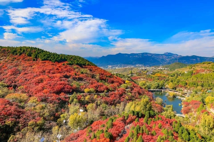 国庆假期后半程,济南红叶谷景区迎来秋日颜值高光时刻。4000余亩黄栌林褪去单绿,将绯红、橙黄、金黄与深绿揉成五彩斑斓的天然织锦,以满谷秋韵为游客的假期之旅收尾。