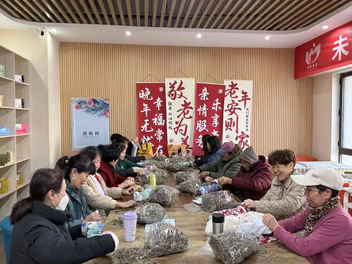 12月17日,济南市历城区王舍人街道魅力之城社区联合王舍人街道社工站、魅力之城社区日间照料中心共同开展“科普防梗护安康,巧制艾枕暖耆年”冬季健康关爱公益活动,为社区老年人送上健康服务与暖心关怀。