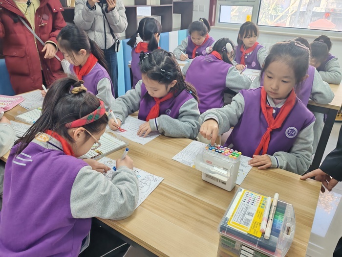 揭牌仪式上,学校向书吧捐赠了首批图书,涵盖文学、科普、历史等多个领域,进一步丰富了社区阅读资源。为保障书吧规范运营与长效服务,学校特邀社区志愿者刘庆岭女士担任图书管理员,并现场颁发聘书。仪式结束后,该校两组“伙伴+”学生成长共同体作为首批体验者走进书吧,沉浸阅读之余,还围绕推荐书目开展了主题绘画、书签制作等活动,将文字转化为充满想象力的视觉表达,展现出阅读带来的多元收获。