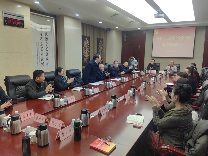 律回春渐,新元肇启。1月9日上午,济南爱国拥军促进会组织理事会成员、部分会员代表和党建工作站党组织负责人,在军休大厦三楼第一会议室召开党的二十届四中全会精神学习交流报告会。济南爱国拥军促进会名誉会长潘传利到会指导,济南爱国拥军促进会会长何作俊主持会议。