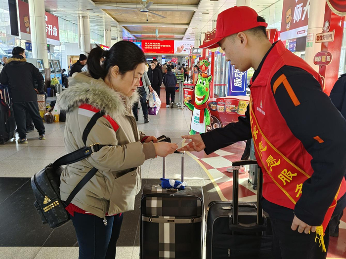 在车站入口处,和勇分公司志愿者杨钧茹已经连续引导1个多小时,嗓音略显沙哑,脸上却始终挂着笑容。“您好,进站请走这边”,她一边抬手示意,一边耐心回答旅客的每一个问题。“很多旅客比较赶时间,我们多问一句、多指一下,他们就能少跑冤枉路。”杨钧茹说,“能帮大家顺顺利利踏上旅途,再累也值得。”