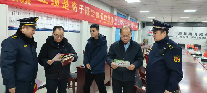 为筑牢安全生产防线,提升城市治理效能,2月26日,济南市城管执法支队五大队赴中铁二十一局济枣高铁J2TJ-1标段工地开展安全生产与普法宣传“开工第一课”活动,并前往南部山区综合执法局进行年后工作谋划部署座谈会,以实干开局,以服务护航,推动城市管理工作高质量起步。