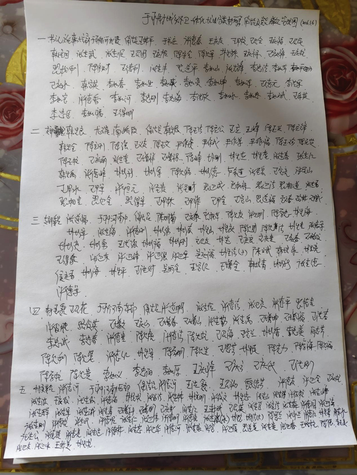 与会人员在充分商议、明确分工后,没有采用打印表格的便捷方式,而是拿起笔,一笔一画、认认真真手写完成了《于科村城乡环卫一体化、垃圾分类村两委、保洁员、党员群众管理图》《于科村环境整治保洁员、公益岗、党员群众代表人员分片统计表》两张责任表。
