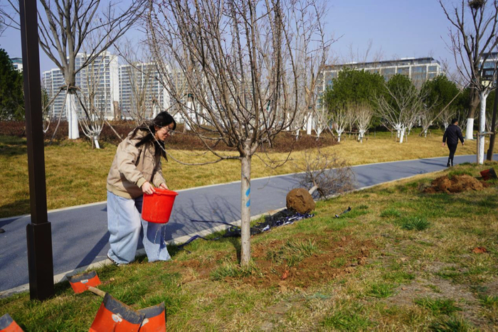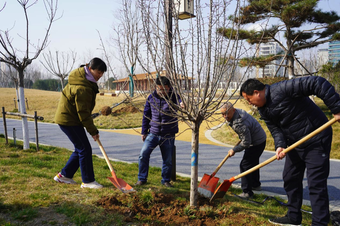 活动现场,工作人员热情高涨、分工协作,手持铁锹、水桶等工具,按照栽种规范操作,挥锹铲土、扶苗校正、培土压实、浇水灌溉,每一个步骤都一丝不苟、有条不紊。春日暖阳下,一株株新苗扎根沃土、迎风挺立,为这座承载着商代文明的遗址公园增添了勃勃生机,也为千年古遗址披上了一层清新的绿装。