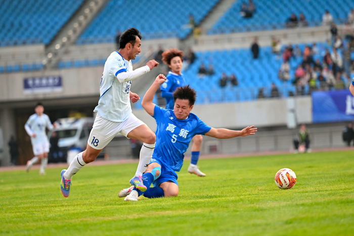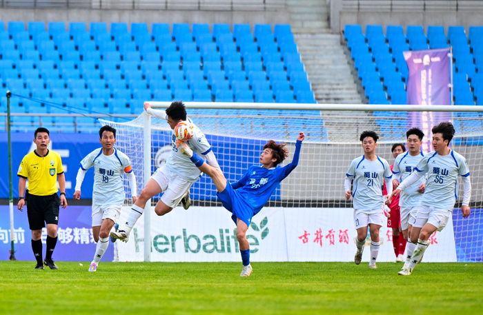 开幕式后,备受瞩目的揭幕战在蜀山区与高新区之间激情上演。看台上,双方球迷阵营的加油声此起彼伏,红蓝旗帜迎风招展,交织成一片热烈的助威海洋。