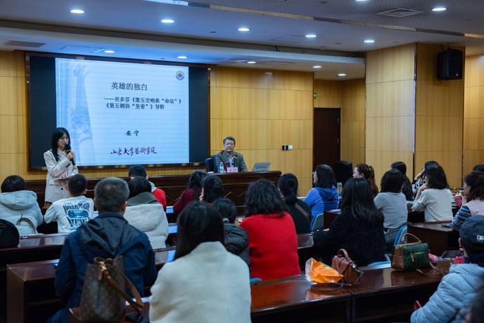 近日,济南市图书馆中心馆小报告厅内座无虚席,一场题为“英雄的独白——贝多芬《第五交响曲‘命运’》《第五钢琴协奏曲‘皇帝’》导聆”的公益讲座在这里温情上演。活动特邀山东大学艺术学院院长、博士生导师安宁教授担任主讲,为近百名爱乐者献上了一场深入浅出的古典音乐盛宴。