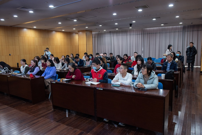 谈及贝多芬坚毅的品格,安教授更是心潮澎湃。他娓娓道来,乐圣一生饱受耳疾折磨,晚年却在无声的世界里写下了最铿锵的音符,那份不屈与抗争、崇高与坚毅,尽数熔铸在《命运》的叩门声与《皇帝》的磅礴气势之中。台下听众无不被这份赤诚所感染,时而凝神屏息,时而热泪盈眶,报告厅内掌声自发响起,仿佛与两百年前的灵魂隔空共鸣。