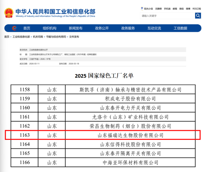 近日,工业和信息化部正式公布2025年度国家级绿色工厂名单,山东福瑞达生物股份有限公司凭借在绿色智造、节能减排及可持续发展领域的深耕细作与卓越实践,成功跻身国家级绿色工厂行列,成为化妆品行业践行“绿色低碳”战略、推动产业绿色转型的标杆企业。