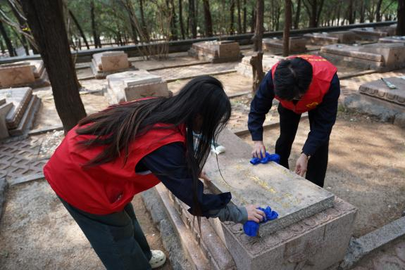 活动现场庄重肃穆,青年志愿者们整齐列队,向革命先烈默哀致敬,深切缅怀为民族独立与人民幸福英勇献身的革命先辈。在团旗下,全体团员青年重温入团誓词,铿锵誓言传递出“矢志不渝跟党走”的坚定信念。随后,志愿者们怀着崇敬之情,认真擦拭烈士墓碑、清理周边环境,以简朴庄重的方式表达对先烈的追思与敬意。一名青年志愿者表示:“每一次擦拭墓碑,都是一次精神的洗礼。我们要把对先烈的崇敬转化为守护城市光明的实际行动。”