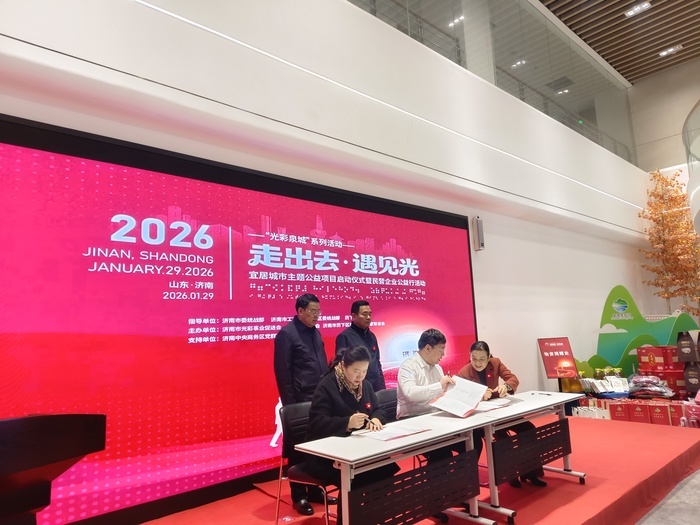 温情涌动之后,是庄严的承诺。在公益宣誓环节,济南市光彩会、济南市盲人协会、济南市导游协会、历下区新生代企业家代表共同郑重承诺,将汇聚各自资源,为视障群体提供切实的无障碍服务与就业岗位对接机会。紧接着,济南市盲人协会、济南市饭店协会与济南市导游协会现场签署了《无障碍出行服务保障倡议书》,致力于从行业规范与制度协作层面,为视障人士的出行安全与便利编织一张更为坚实的保障网。此外,多家民营企业代表现场向视障群体及儿童捐赠了包括衣物、家居用品、年货礼包在内的爱心物资,由相关部门代表接收,展现了民营企业实实在在的公益热忱。