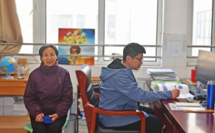 1979年出生的孙元金是济南市长清区第二初级中学的一名教师。如今,带着母亲韩淑芳上班已经成为他生活的日常。2020年底,一向坚强能干的韩淑芳被诊断患上阿尔茨海默病,她记忆力的减退速度超乎孙元金想象。随着病情加重,母亲像没有安全感的孩子一样紧紧盯着孙元金,寸步不离。孙元金是独子,夫妻两人不仅工作忙,家里还有两个孩子需要照顾,这种情况让孙元金分身乏术。幸运的是,在陷入两难的孙元金向学校说出了自己的处境之后,学校迅速核实了情况并向他伸出了援手:孙元金在不耽误正常工作情况下,可以带着母亲来学校上班。于是,大家便经常在校园里看到韩淑芳的身影,或在走廊扫地、擦窗、抹桌子,或安静地坐在办公室角落,学校里多了个“保洁员奶奶”,孙元金的家庭和工作也暂时得到了平衡。
