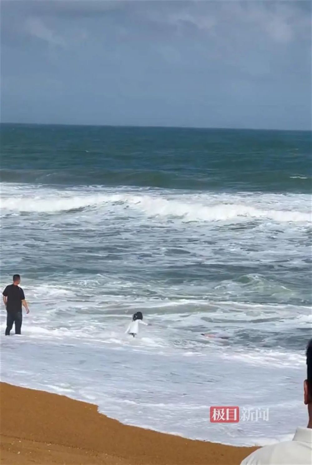 “小女孩蹲在海边玩沙子,一个大浪过来,就把她冲到海里去了。”来自河南郑州的郭女士正在海边游玩,她目击了这惊险一幕,白色的巨浪向岸边袭来,有一名在海边玩耍的小女孩被巨浪卷入海中,小女孩在海中随浪来回漂荡,一名白衣小哥跑向海中多次尝试拉回小女孩,但巨大的海浪给救援带来不少难度。