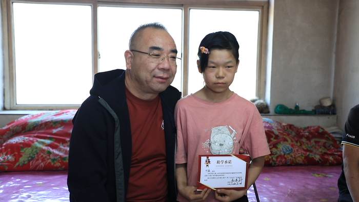 就在那次见面结束时,孙老师从随身的包里拿出一份助学承诺书,郑重地放在鑫鑫面前。“孩子,从今天起,你的学费、生活费,都由孙大大来承担。你只管好好读书,剩下的交给我。”他握起笔,在承诺书上签下自己的名字,又将笔轻轻递到鑫鑫手中。女孩有些迟疑,但还是在父亲的鼓励下,歪歪扭扭地写下了自己的名字。那一刻,土炕上的微光似乎亮了几分,一个郑重的约定,就这样在三平方米的陋室里悄然缔结。