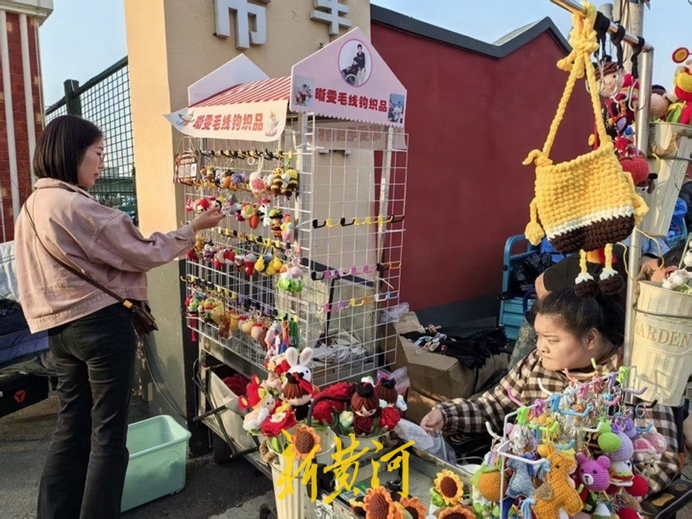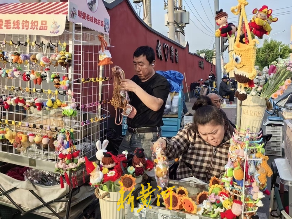 杨青没想到,曾经自娱自乐的爱好,成为了可以变现的生计。她除了在环联夜市门口摆摊,还接一些线上订单,经常会有忙不过来的情况。“做的钩织品不够卖了,我就找同为残疾人的朋友们帮忙。”杨青的丈夫在环联夜市附近摆摊卖锅包肉,只要钩织生意忙起来,丈夫便会放下生意,一起帮忙。在夜市门口络绎不绝的人流中,总有不少人会停下来购买钩织品,尽管他们可能并不需要。这也让杨青感受到,这座城市充满了人情味与温暖。