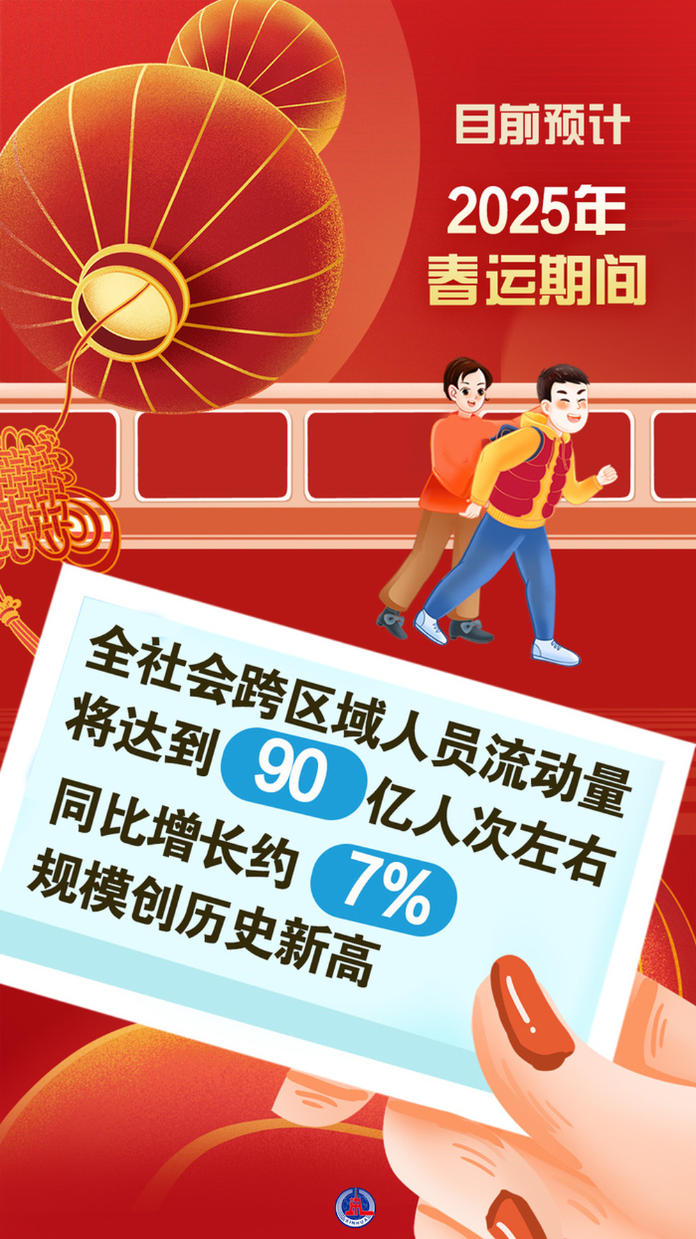 2025年全国春运电视电话会议31日在京召开。国家发展改革委副主任李春临在会上表示,从总体规模看,2025年春运全社会跨区域人员流动量和铁路、民航客运量均有望创历史新高,目前预计,全社会跨区域人员流动量将达到90亿人次左右。