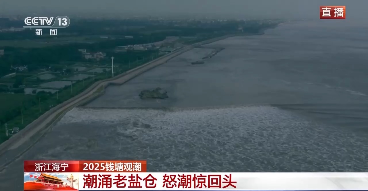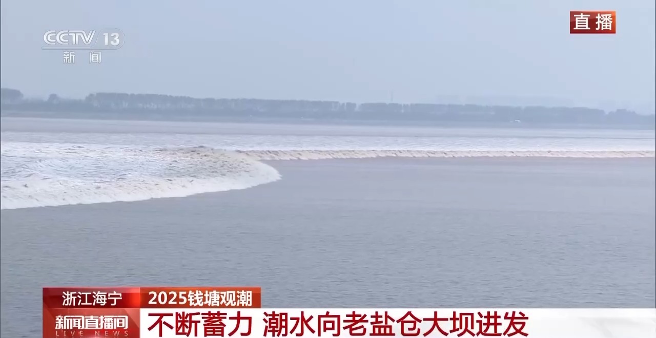 总台记者 彭雨佳:我现在所在的位置是钱塘江的老盐仓大坝。如果把潮水比做运动员,从起潮点到老盐仓,它已经奔跑了50多公里。如果说前两天我所在的塔山坝观潮点,潮水是刚刚开始蓄力起跑。在老盐仓的位置,潮水可以说是进入了最具爆发力的阶段。