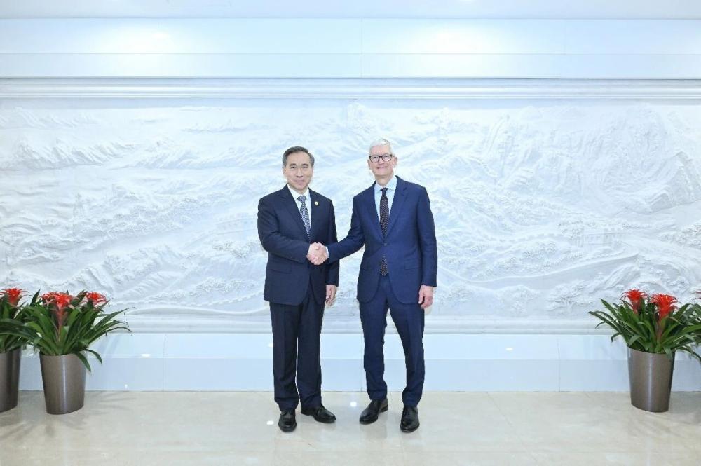 3月20日,中国贸促会会长任鸿斌在京分别会见美国苹果公司首席执行官蒂姆·库克、美国药品研究与制造企业协会总裁兼首席执行官吴思泊,就加强中美工商界交流、参与2026年APEC系列工商界活动、深化科技及医药领域合作等议题交换意见。