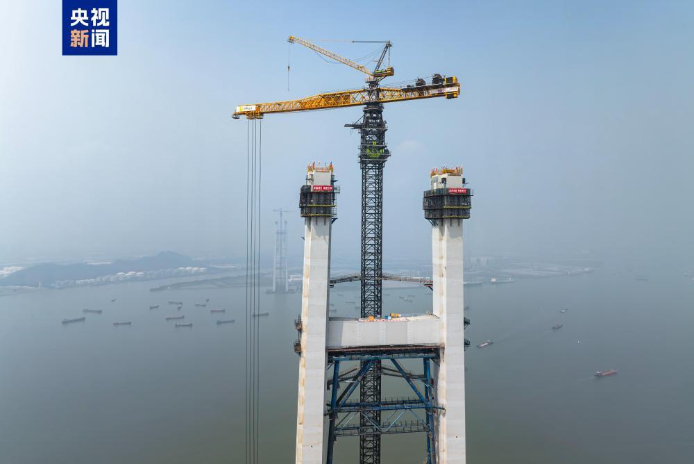 3月26日11时许,粤港澳大湾区核心枢纽工程狮子洋通道关键控制性工程——狮子洋大桥实现东、西主塔封顶,转入上部结构施工。