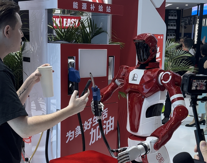 外籍博主与智能服务机器人互动