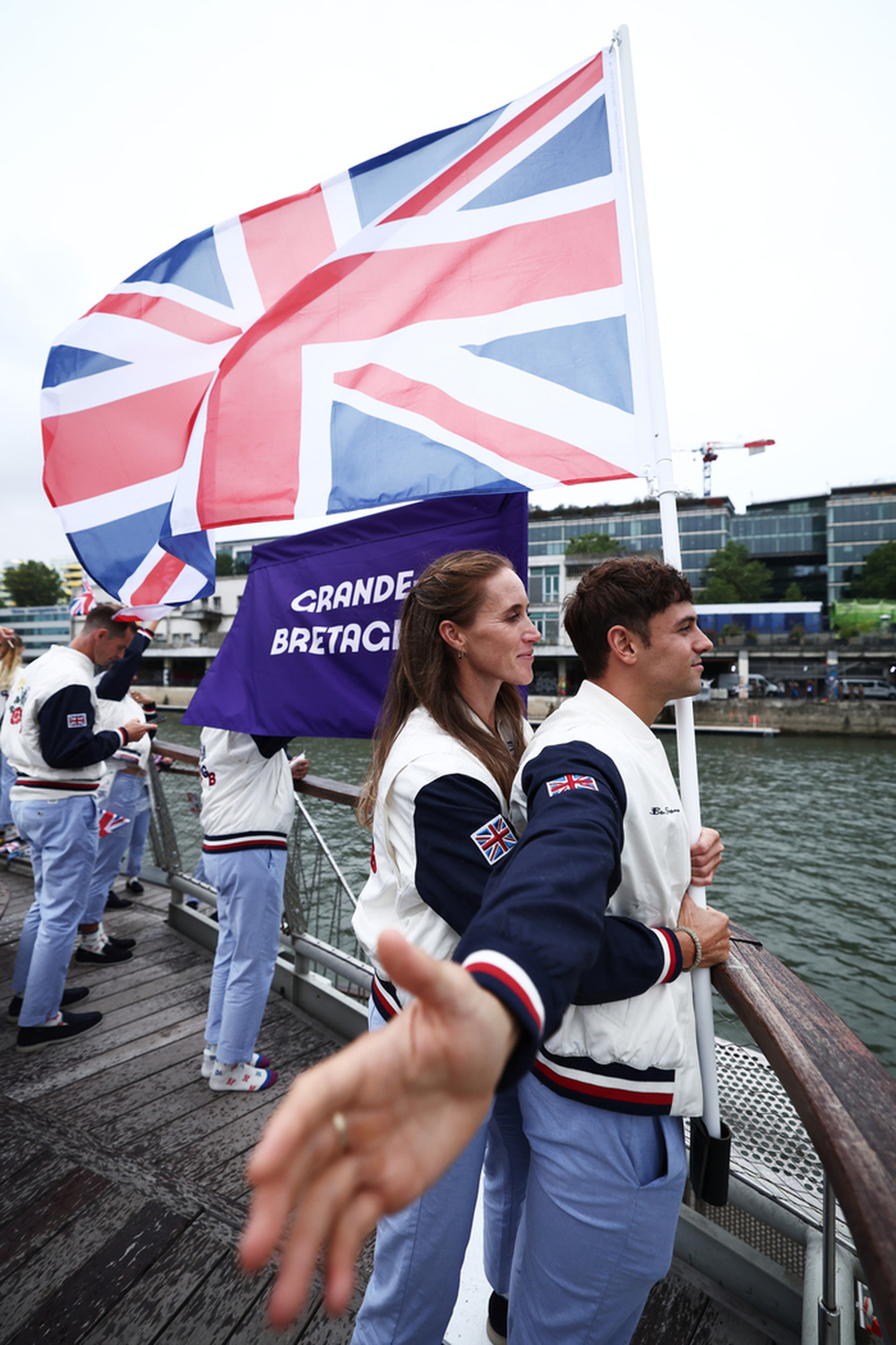 2024年巴黎奥运会开幕式,英国旗手跳水运动员戴利、赛艇运动员海伦·格洛弗入场时致敬经典电影《泰坦尼克号》。