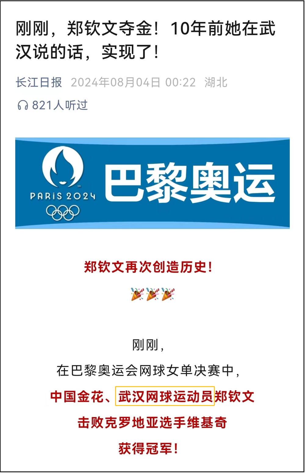 《夺冠后的郑钦文:就想吃一碗家乡的牛肉面!》