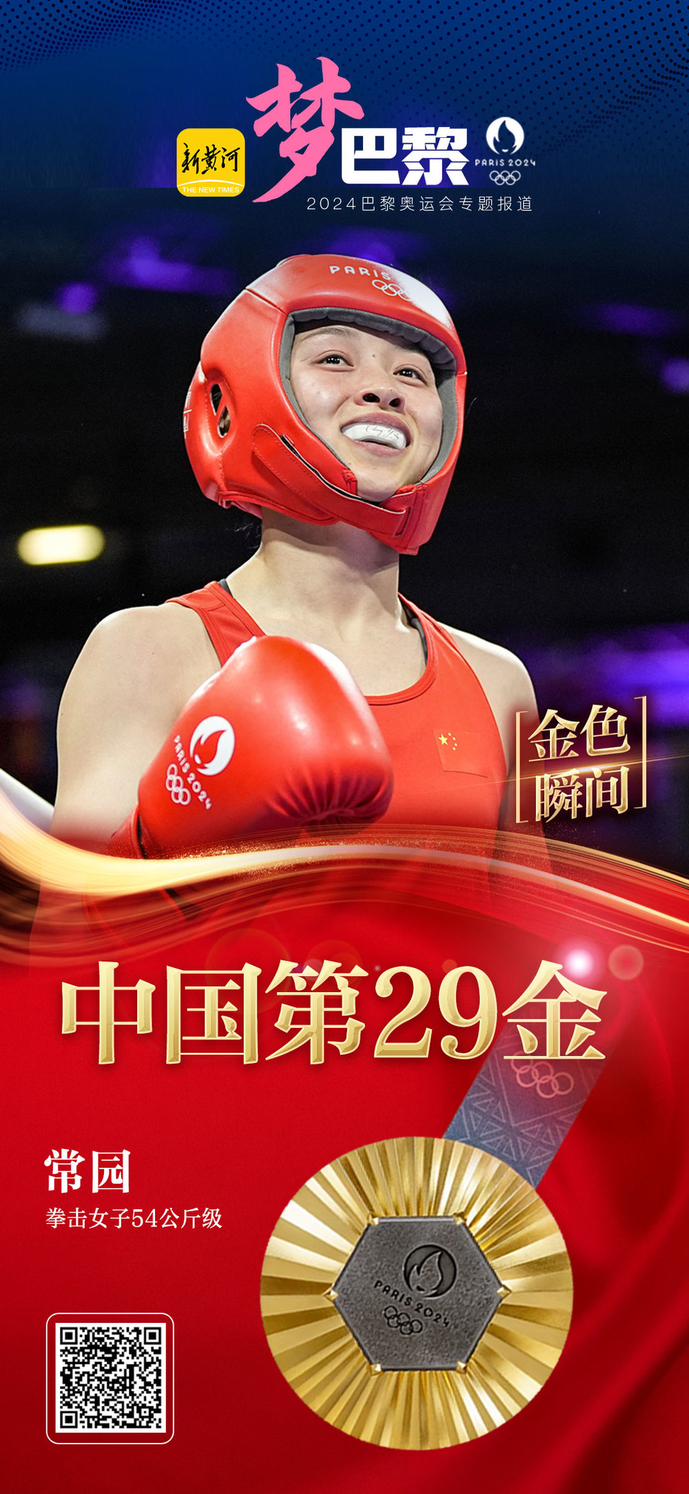 北京时间8月9日,巴黎奥运会拳击女子54公斤级决赛,中国选手常园战胜土耳其选手,夺得金牌。这是中国代表团在本届奥运会取得的第29枚金牌,也是中国首枚奥运女子拳击金牌。