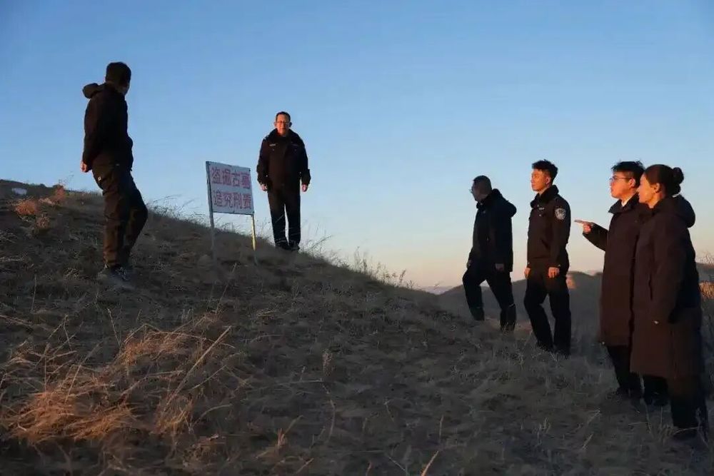 12月4日,内蒙古自治区凉城县检察院联合县公安局及文物保护部门实地查看涉案文物保护性回填修复情况。
