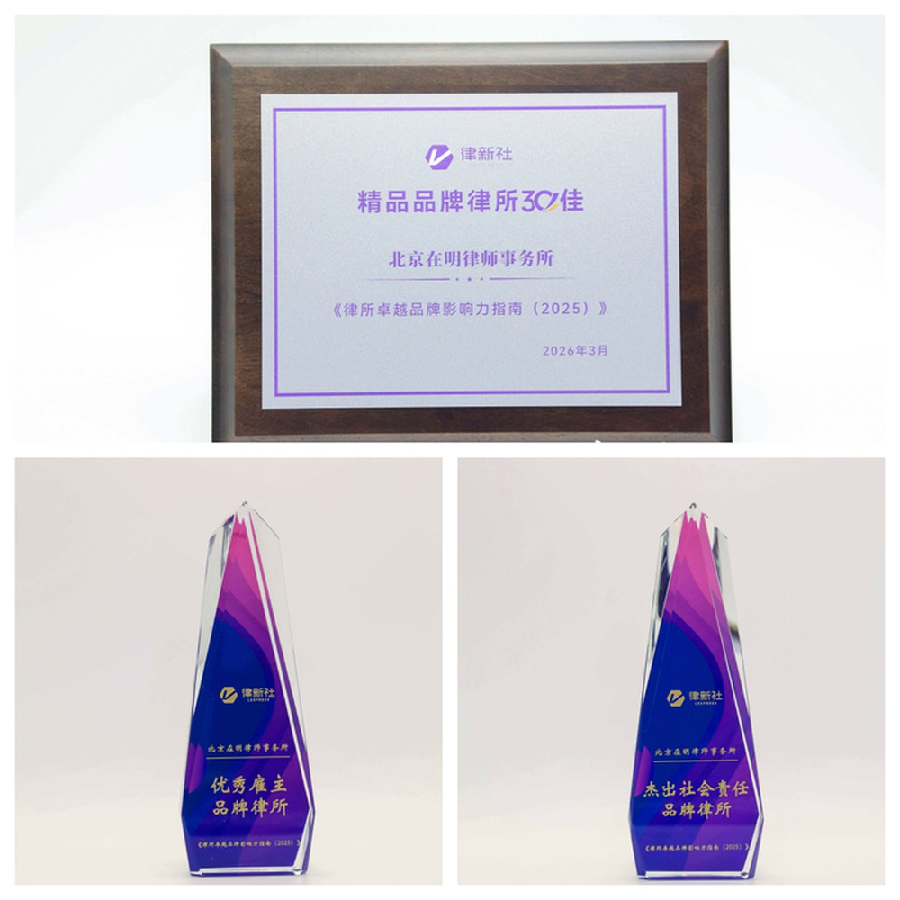 “四力”,即品牌生态力、品牌评价力、品牌活跃力和品牌识别力,旨在全面评估和概括一个律所品牌的价值与发展潜力。在激烈的角逐中,在明律所凭借其在专业建设、组织管理、企业文化及社会责任等维度的均衡发展与卓越表现,斩获了三项极具分量的律所大奖:“2025年度精品品牌律所30佳”“2025年度优秀雇主品牌律所”及“2025年度杰出社会责任品牌律所”。这不仅是律新社对在明律所作为行政法大所专业实力的背书,更是对其内部管理与行业担当的高度认可。