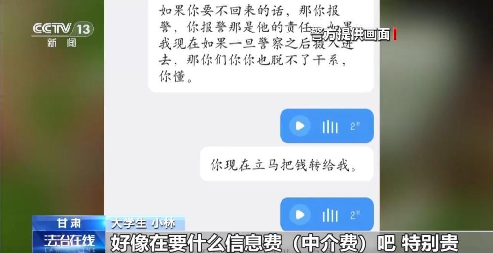大学生 小林:我一直给她发消息,她没有理我。有一天我在QQ上看到她跟别人的聊天记录,好像在要信息费(中介费)。我感觉有点不对劲,当时就报警了。