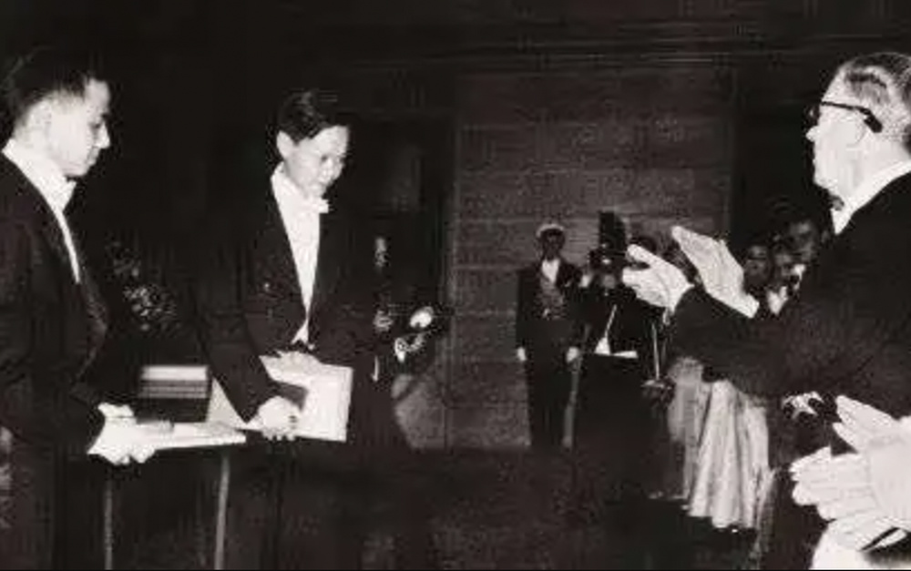 杨振宁(左一)、李政道在诺奖颁奖现场