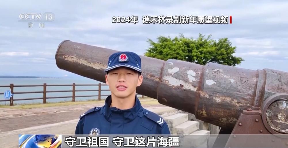 谯禾林生前影像:我叫谯禾林,我在广西白龙半岛,今年是我来海警工作的第二年,2024年,我的愿望是继续留在这片海域,守卫祖国,守卫这片海疆。