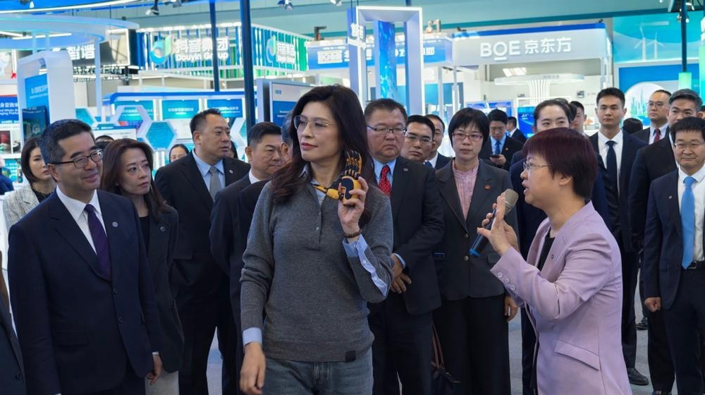 11日上午,郑丽文一行来到中关村国家自主创新示范区展示中心,实地感受北京建设人工智能创新策源地的澎湃动能。在展示区,郑丽文对一款“智能仿生手”产生浓厚兴趣,仔细把玩,不时转动手指感受其灵活张力,还热情招呼访问团成员一同体验。当听到厂商说可以带回去,郑丽文惊呼“真的吗”,并欣然接受。