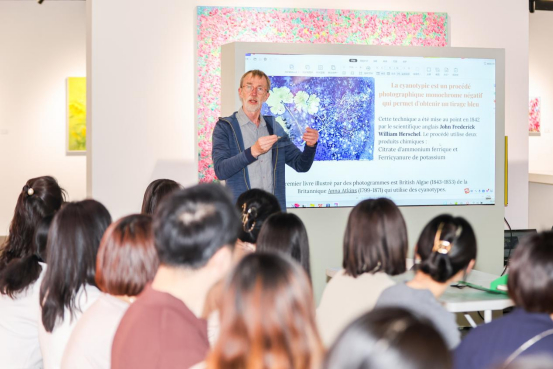 On the evening of April 24. Prussian Blue of the Sun — Cyanotype Photography Workshop unfolded in the art space at Jinan Guihe Shopping Centre. Jointly hosted by the Alliance Française and co-organised by the mall, the event brought together five artists from Rennes-based Connexions Photographiques—Jean-Charles Devigne, Didier Gautier, Laurent Bruneau, Gilles Oriot, and Brigitte Delalande. Through an immersive, hands-on session, they guided participants on a blue journey across time and space, using the magic of light and water to create a poetic experience that celebrates the cultural bond between Jinan and its sister city, Rennes.