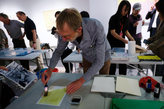 4月24日晚,一场别开生面的艺术盛宴在济南贵和购物中心5层艺术空间温情上演。由山东法语联盟主办、济南贵和购物中心协办的“太阳的普鲁士蓝——蓝晒摄影工作坊”如期举行。来自法国雷恩摄影联合会(Connexions Photographiques)的五位艺术家——Jean-Charles Devigne、Didier Gautier、Laurent Bruneau、Gilles Oriot、Brigitte Delalande全程驻场,用亲切的肢体语言和简单的英语、法语配合翻译志愿者,与现场参与者共赴一场跨越时空的蓝色之约,用光与水的魔法书写济南与友好城市雷恩的文化新篇。