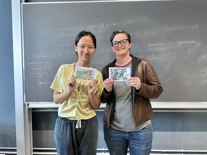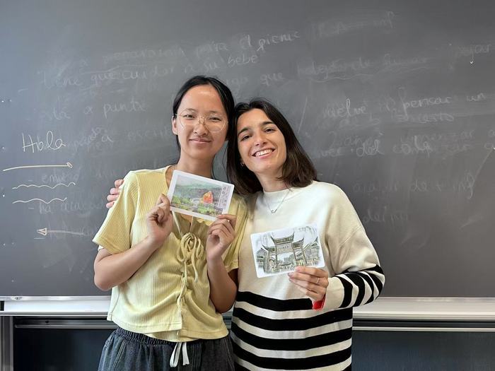 在活动交流现场,泉城笔墨作品与文创明信片吸引了当地友人目光。此次展出的书法作品均出自济南市青年书法协会副主席赵新成之手,既承载着中国书法艺术的千年底蕴,也融入了泉城济南的文化基因。从 “福” 字承载的吉祥文化,到古诗条幅里的东方意境,再到明信片上泉水景观背后的城市故事,让西班牙友人在笔墨意趣与泉城风物中,读懂济南的城市气质与中国文化的深厚底蕴。
