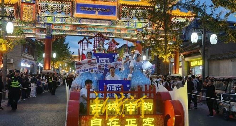 10月2日18时,正定古城南城门北广场的鼓点准时划破天际,贯穿假期的双节大巡游准时出发。800米长的巡游路线上,三大方阵构成一幅流动的文化长卷:“国潮非遗”方阵中,常山战鼓的激昂节奏与安塞腰鼓的雄浑气势交织,变脸艺人的脸谱在夕阳下瞬息变幻,非遗技艺在行进中完成活态传承;“古城名片”方阵里,身着汉服的表演者手持团扇款款而行,荣国府的“红楼十二钗”与赵云庙的“三国勇士”依次亮相,重现古城历史记忆。