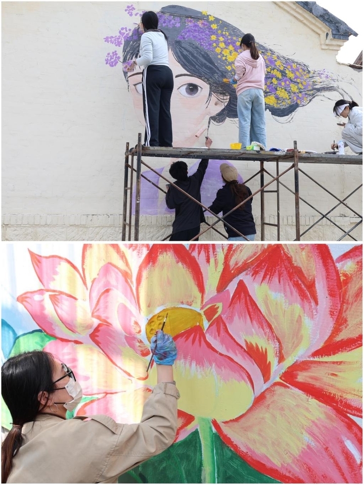 4月中旬,20余名师生奔赴高青县开展现场墙绘创作。团队精细施工、反复打磨,将黄河文化元素与高青地域特色有机融合,高质量完成全部墙绘作品。作品主题鲜明、构图大气、细节精致,赢得高青县文旅局的高度评价。