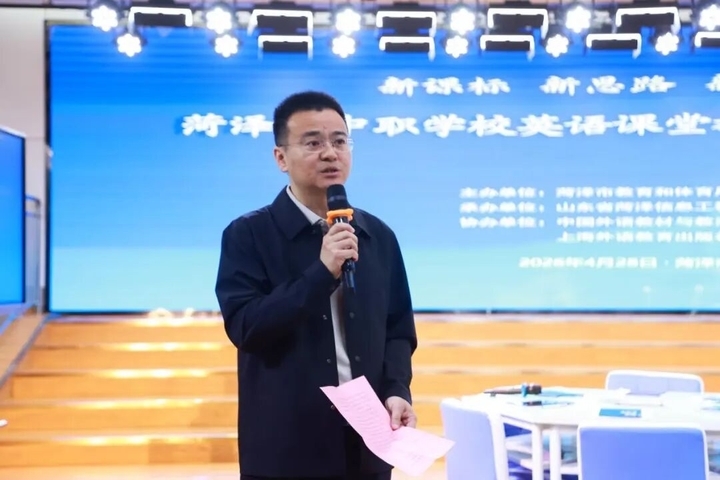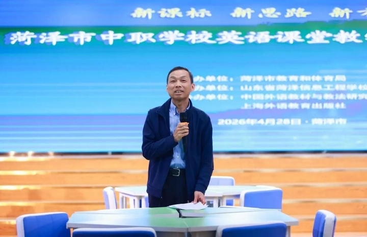 4月28日,菏泽市中等职业学校英语课堂教学创新培训活动在山东省菏泽信息工程学校举办。此次活动由菏泽市教育和体育局主办,上海外国语大学中国外语教材与教法研究中心、上海外语教育出版社协办,旨在推进中职英语课堂教学创新,助力职教高考。