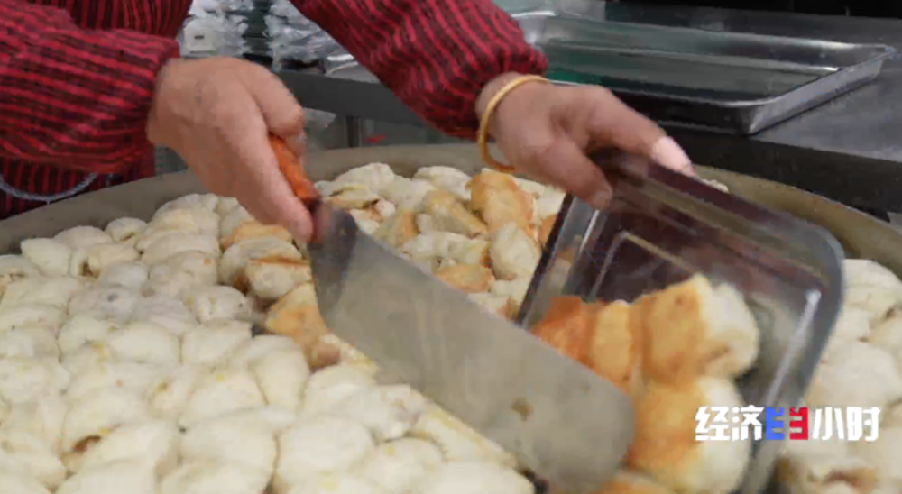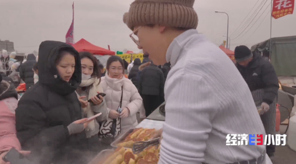油煎包同样受到追捧,五毛钱一个,一次大集能卖出五六千个。焦黄酥脆的油煎包和鲜美的羊汤搭配在一起,成了不少游客赶大集的必点组合。