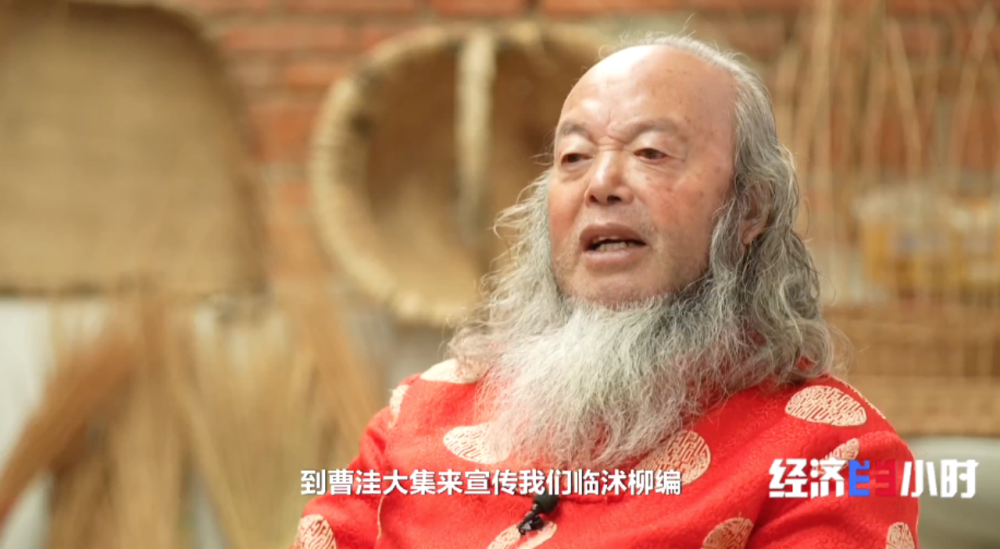 72岁的杨进邦,是国家级非物质文化遗产临沭柳编代表性传承人。曹洼大集火了以后,当地专门邀请他在大集上开设了展位,现场展示柳编非遗。