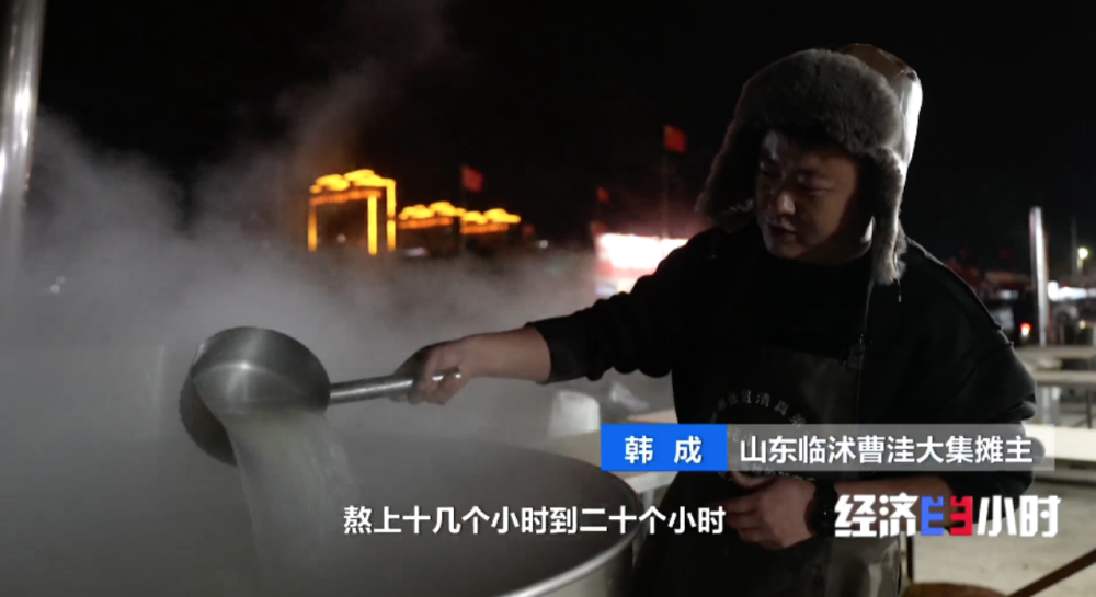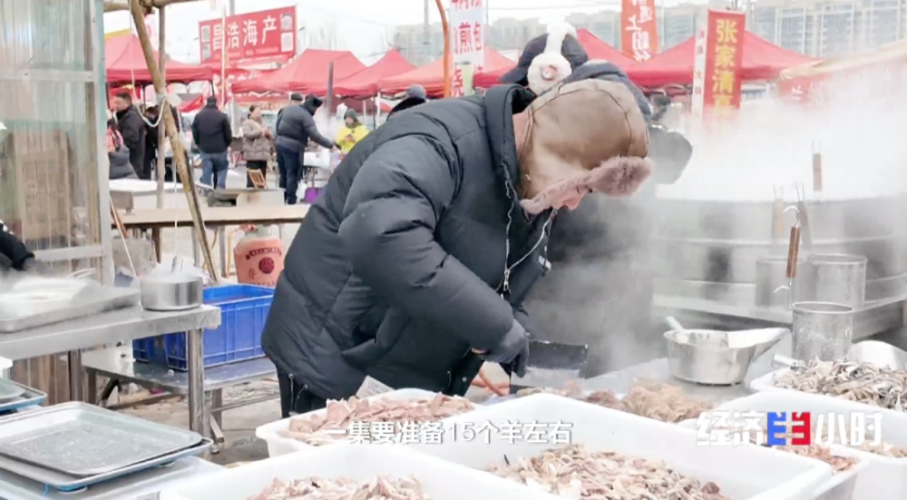 凌晨4点,山东临沭曹洼大集上,摊位亮起了灯。韩成和伙计们已经忙活起来。韩成的羊肉摊上,羊汤和煎包是招牌特色。羊汤熬了近十个小时,汤底呈现出诱人的奶白色。