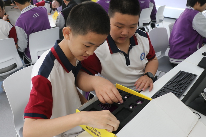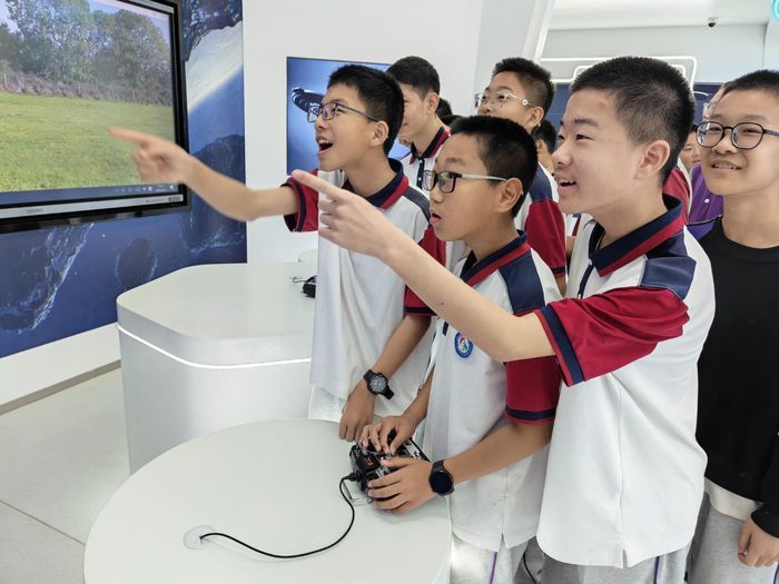 结束户外行程后,师生们共同前往高新区人工智能教育示范中心,开启沉浸式科技探索之旅。作为全市首个以无人驾驶技术为特色的人工智能教育示范中心,同时也是全市首批五个人工智能教育基地之一,这里汇聚了众多前沿科技成果,为同学们搭建了近距离接触人工智能的优质平台。在中心内,大家依次参观体验无人驾驶技术、语音识别、图像识别、模拟飞行等一系列前沿人工智能应用项目,真切感受科技的独特奥妙与无限魅力。在教学实验室中,同学们更是亲手操作无人驾驶小车,沉浸式体验语音识别互动课程,近距离接触人工智能核心技术,直观了解人工智能为日常学习、生活带来的便捷与变革。新奇的体验充分激发了同学们的科学探索兴趣,拓宽了科技视野,让大家在实践中体悟科技魅力,埋下崇尚科学、勇于创新、敢于突破困境的种子。