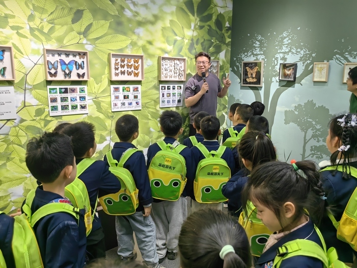 随后,孩子们在老师的带领下分批走进科普馆,开启新一轮科普探索。“飞羽奇遇” 展区的鸟类标本与生态造景,宛如鸟类的童话世界;“森域奇境”“莽原之息” 展区,又让大家领略到北方森林的生机与草原动物的灵动。最热闹的要数 “探秘昆虫世界” 活动,科普老师抛出问题,孩子们总能踊跃抢答。从 “昆虫有六条腿”,到知道工蚁是蚂蚁家族的 “超级保姆”,一个个知识点在欢声笑语中,悄悄在孩子们心里种下了科学的种子。馆内数十种昆虫标本,既有济南本地常见种类,也有来自世界各地的奇特品种,孩子们争相提问、积极互动,收获满满。