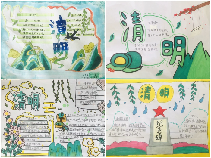 此外,学校的手抄报创作与清明诗词书写活动也同步开展。同学们积极参与,以笔墨传情,在手抄报中精心绘制清明图景,书写传统民俗、英烈事迹与经典诗词,一幅幅作品主题鲜明、创意满满,展现出对传统文化的热爱。诗词书写环节,同学们凝神书写杜牧《清明》、韩翃《寒食》等千古名篇,在一笔一画中感受书法魅力,在诗词韵律中品味清明文化,让传统文化在书写中得到传承。